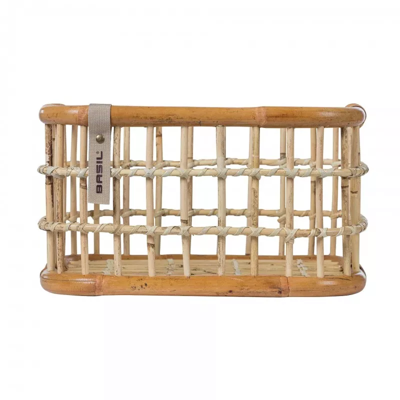 Panier avant de vélo fait en rotin. Contenance 18 L. S'adapte sur tous types de porte-bagages avant. Satisfait ou remboursé sous 30 jours.