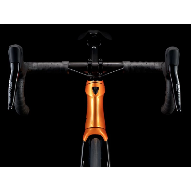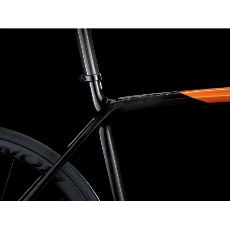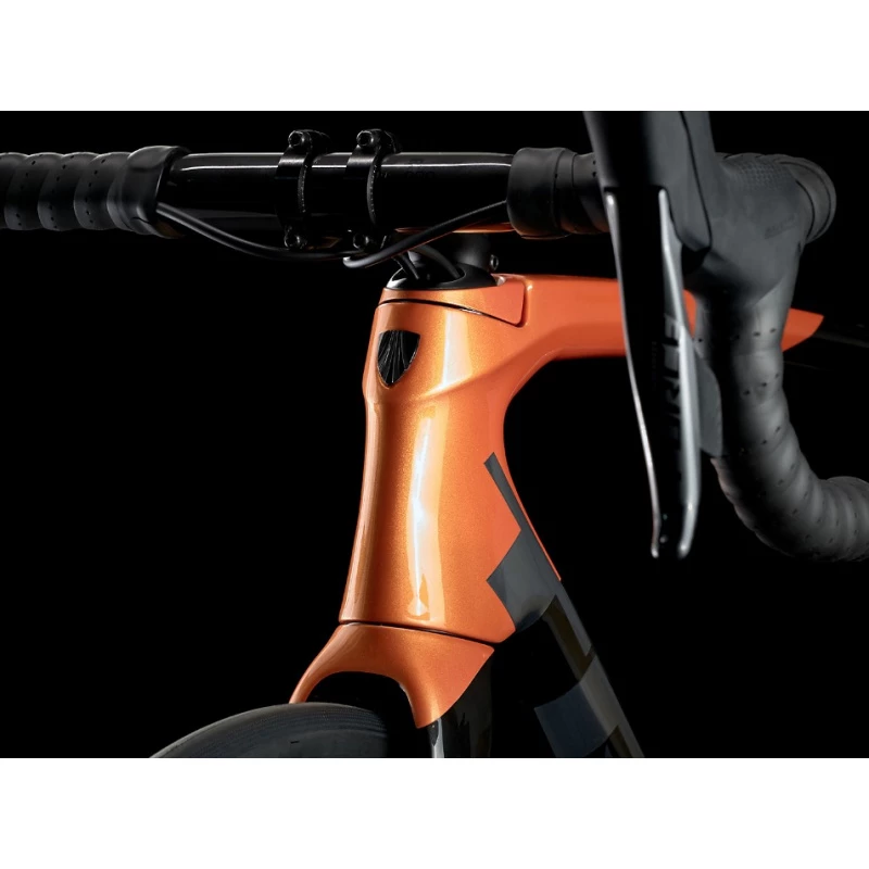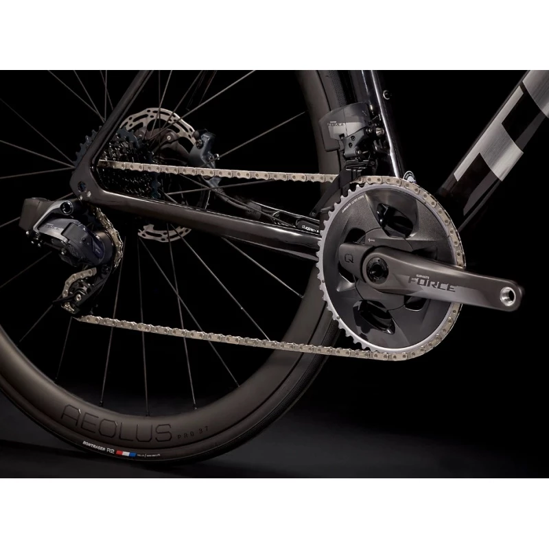Il s’agit d’un vélo de course en carbon ultra léger et au désign aérodynamique qui permet de rouler encore plus vite. Il est équipé d’une transmission sans fil Sram Force Etap axs 12vitesses qui offre un changement plus fluide et précis et dispose d’une paire de roues très légères en carbon Bontrager Aeolus Pro 37.