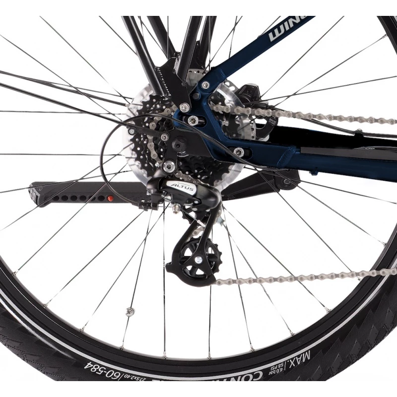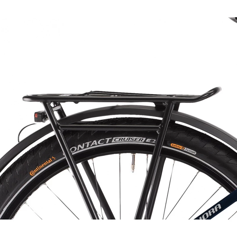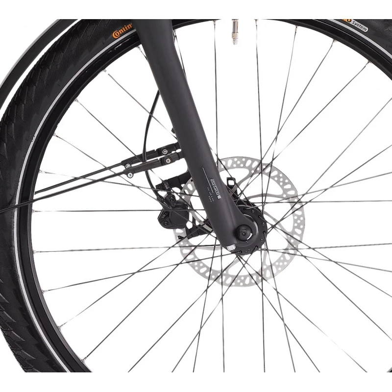 De robustes pneus Continental de 27,5 » et une fourche aluminium à suspension à l’avant vous permettront d’atteindre votre destination sereinement, même hors des sentiers battus.